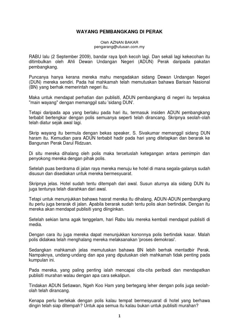 Wayang Pembangkang Di Perak Oleh Aznan Bakar