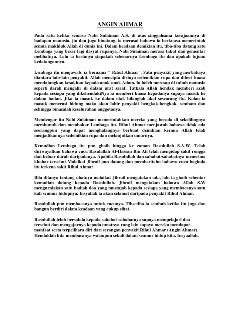 Doa Menghindari Penyakit Angin Ahmar Doa Wise Allah