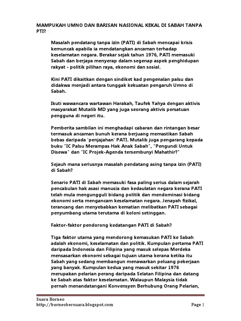 Mampukah Umno Dan Barisan Nasional Kekal Di Sabah Tanpa Pti