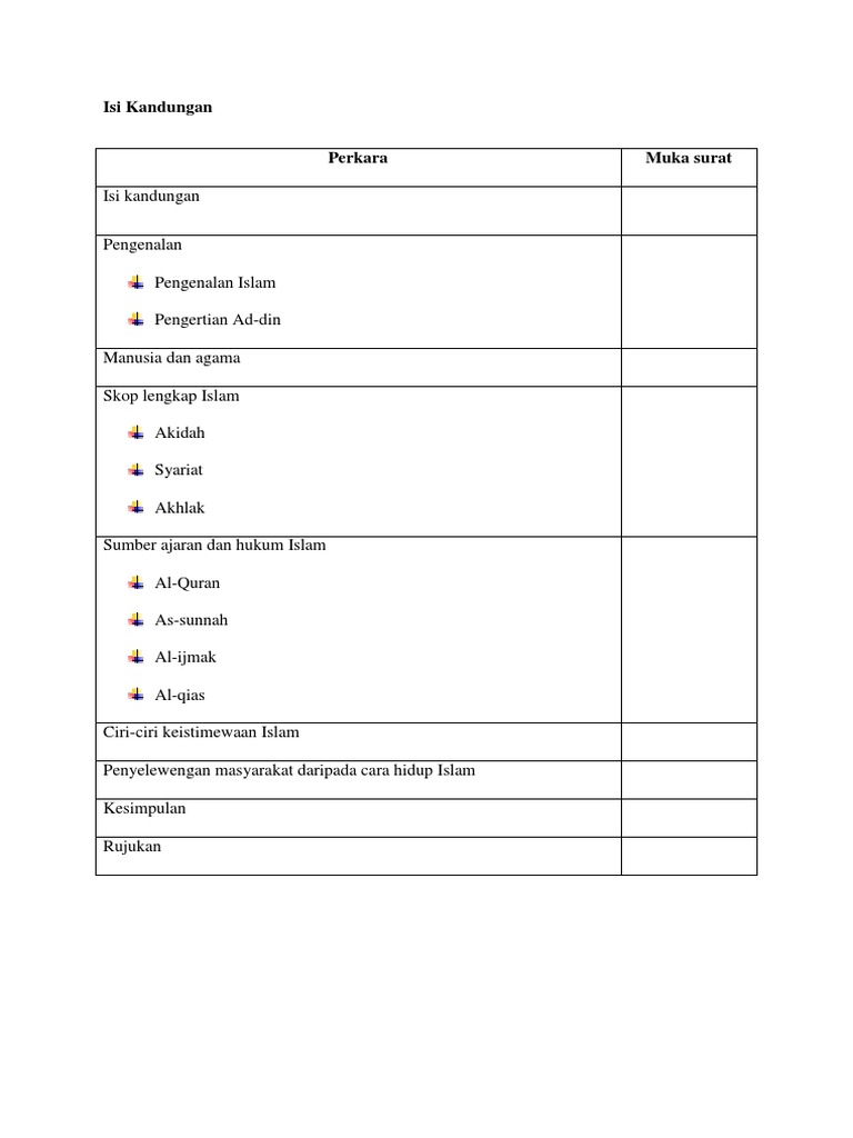 Contoh Isi Kandungan Assignment 1