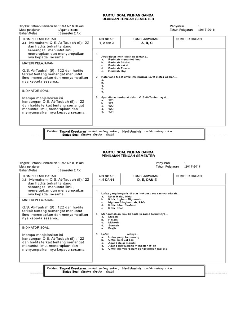 Contoh Soal Uas Pai Kelas X Semester 2 Kurikulum 2013 Dan Jawaban Tekape Id