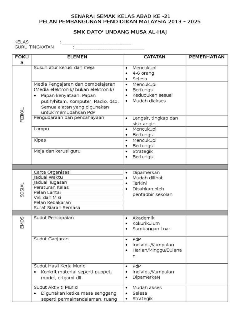Senarai Semak Kelas Abad 21 Docx
