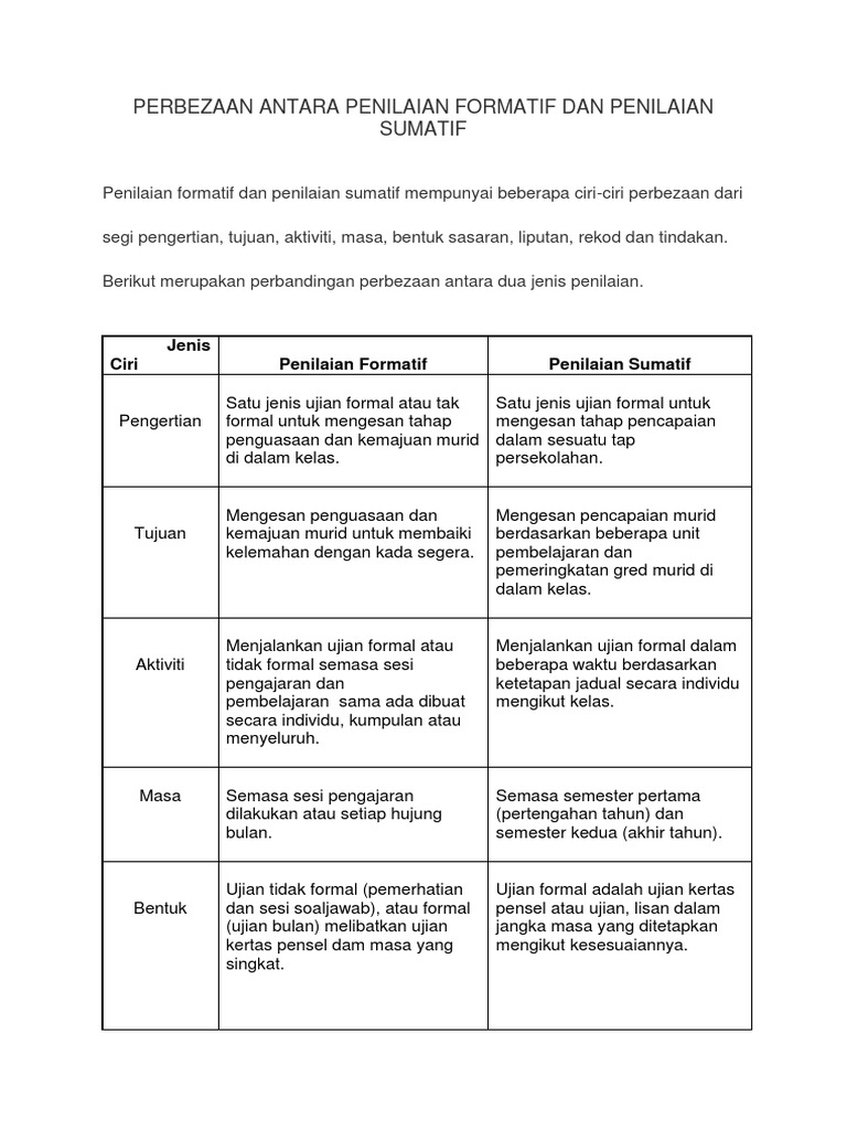 Penilaian Pengajaran Dan Pembelajaran Perbezaan Penilaian Formatif Dan Sumatif