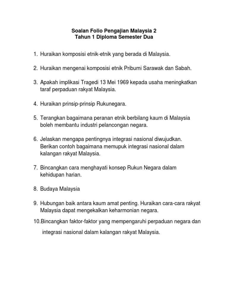 Soalan Folio Pengajian Malaysia 2 Tahun 1 Diploma Semester Dua