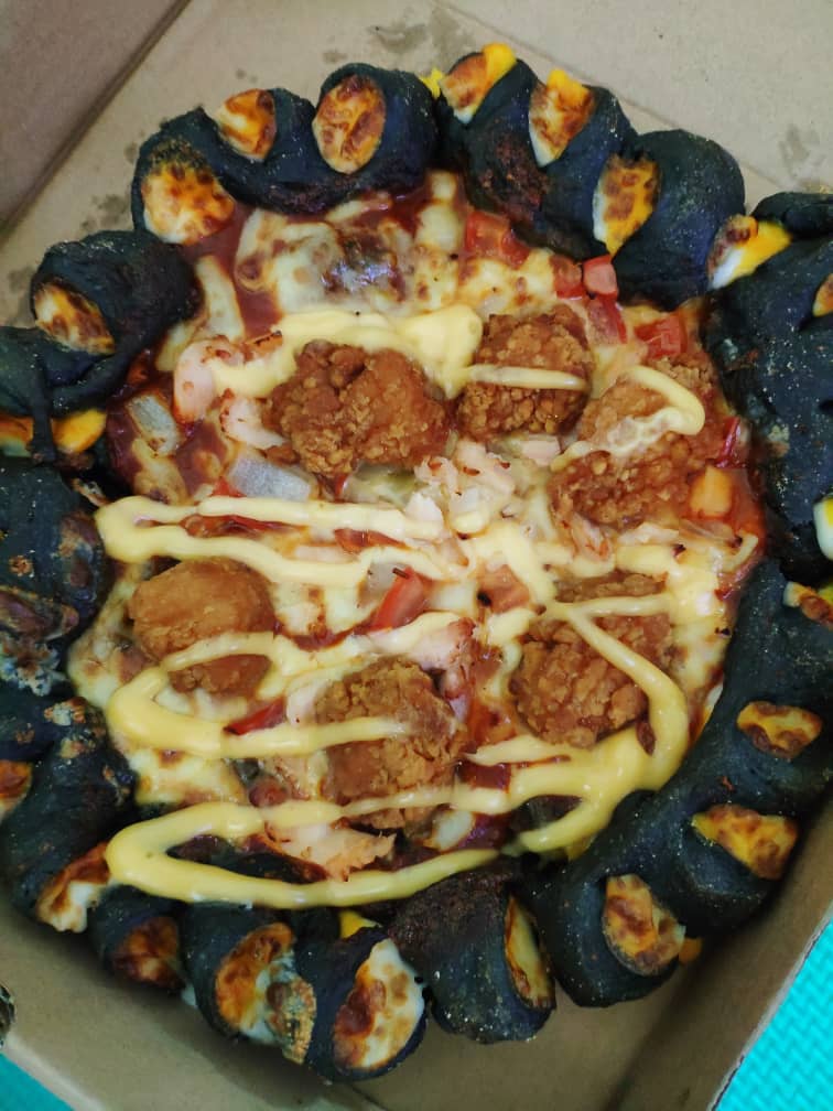 Pizza Hut In Malaysia Has A Black Volcano Pizza With Charcoal Infused Pizza Dough Cheese Filled Volcano Crusts Chicken Bites Foodporn
