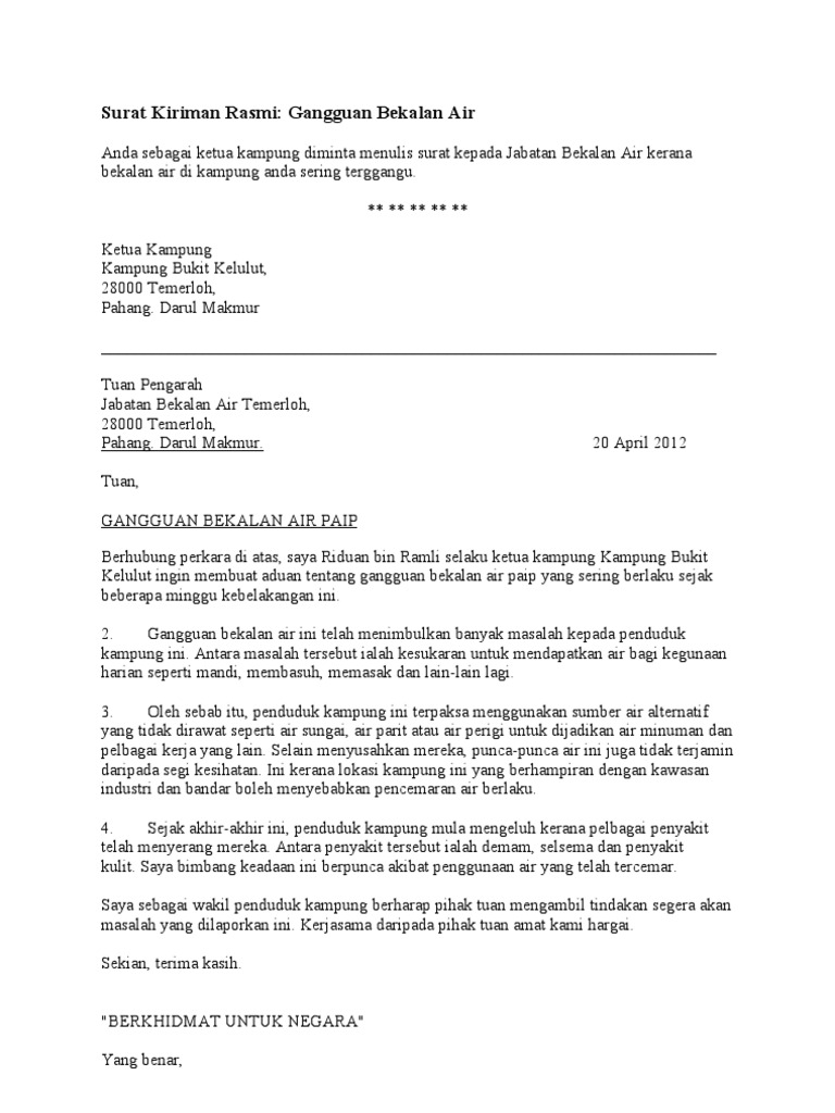 Surat Kiriman Rasmi Gangguan Bekalan Air