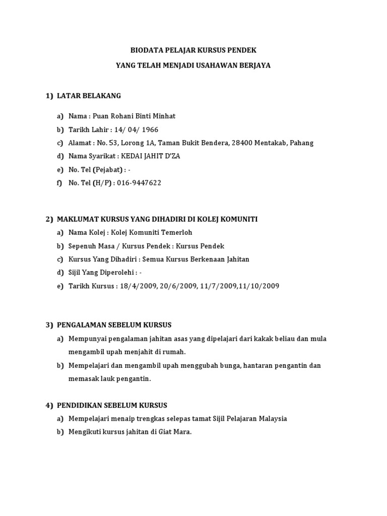 Antara Peserta Kursus Pendek Kktemerloh Menjadi Usahawan